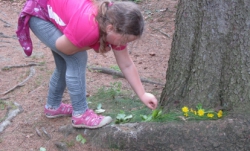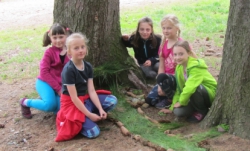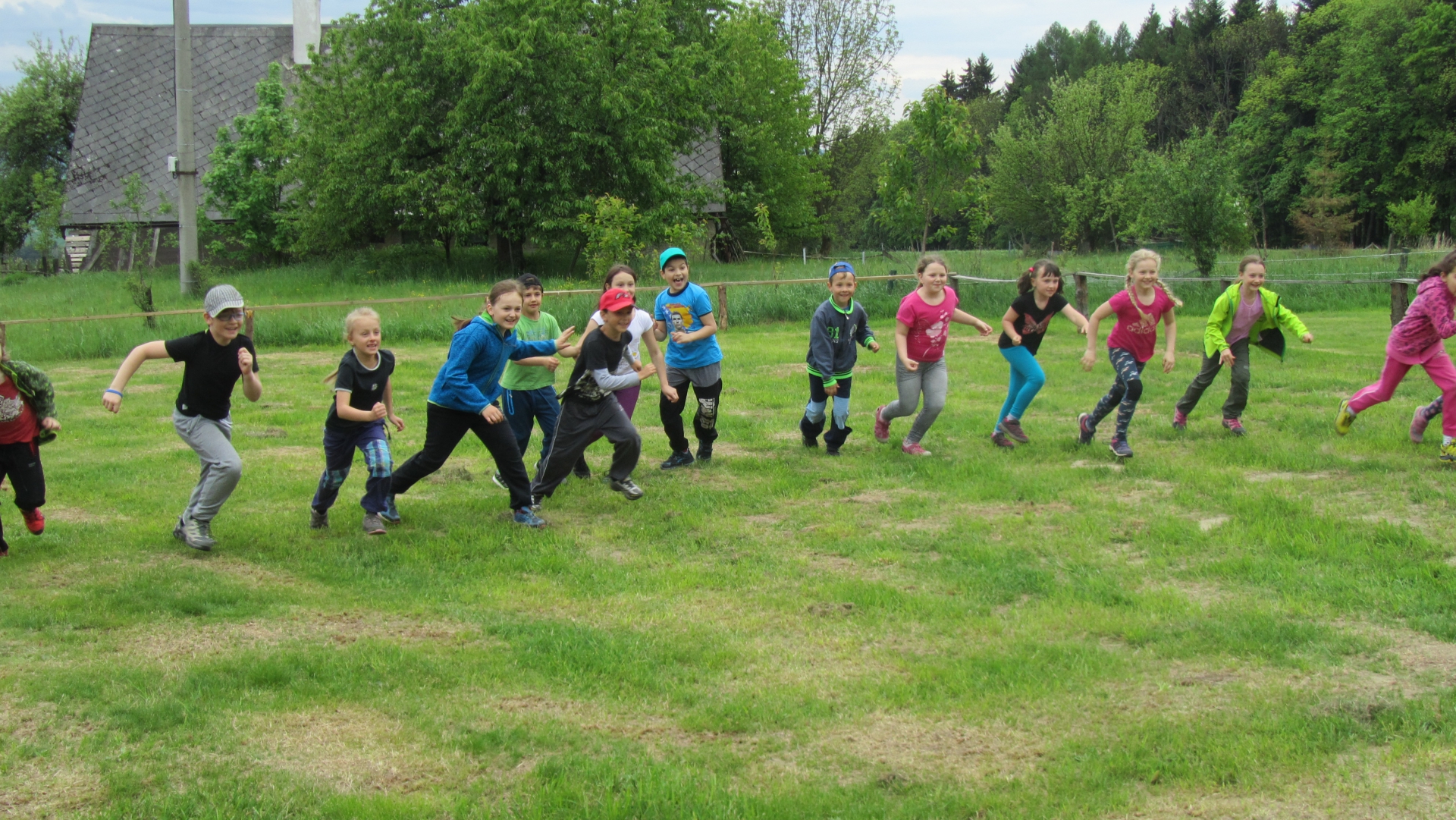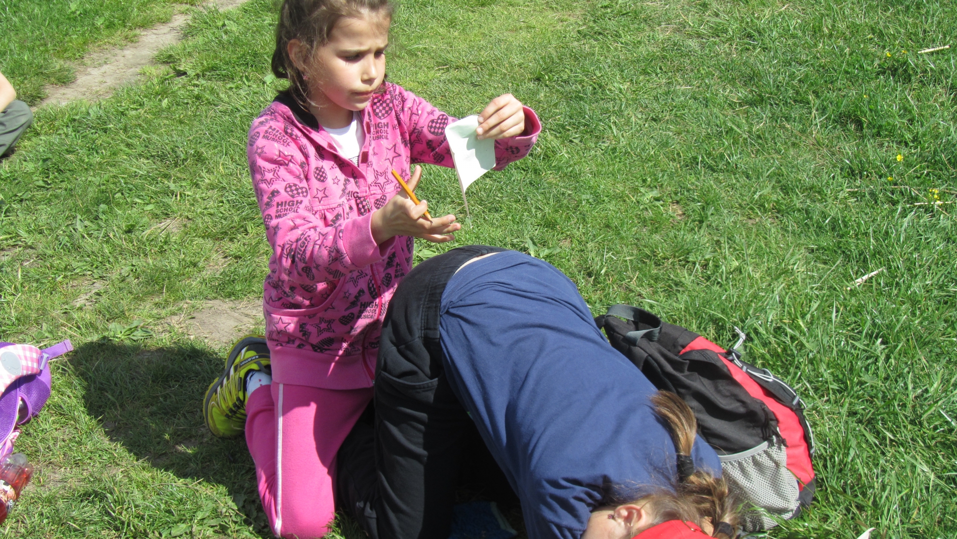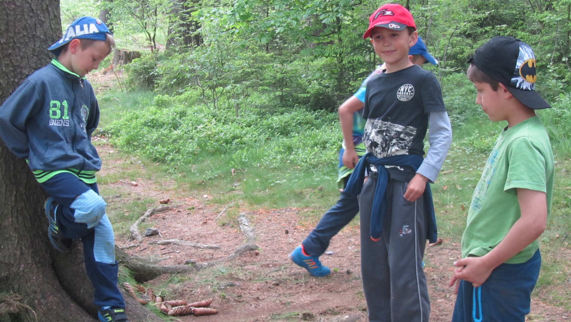 Nejmladší děti jely autobusem do Pěkova a po krátké svačince na louce za Michálkovými vyrazily nejkratší cestou na Ostaš. Po cestě zodpovídaly otázky na téma příroda. Na Ostaši v lese stavěly domečky z přírodních materiálů, které pak představily spolužákům.