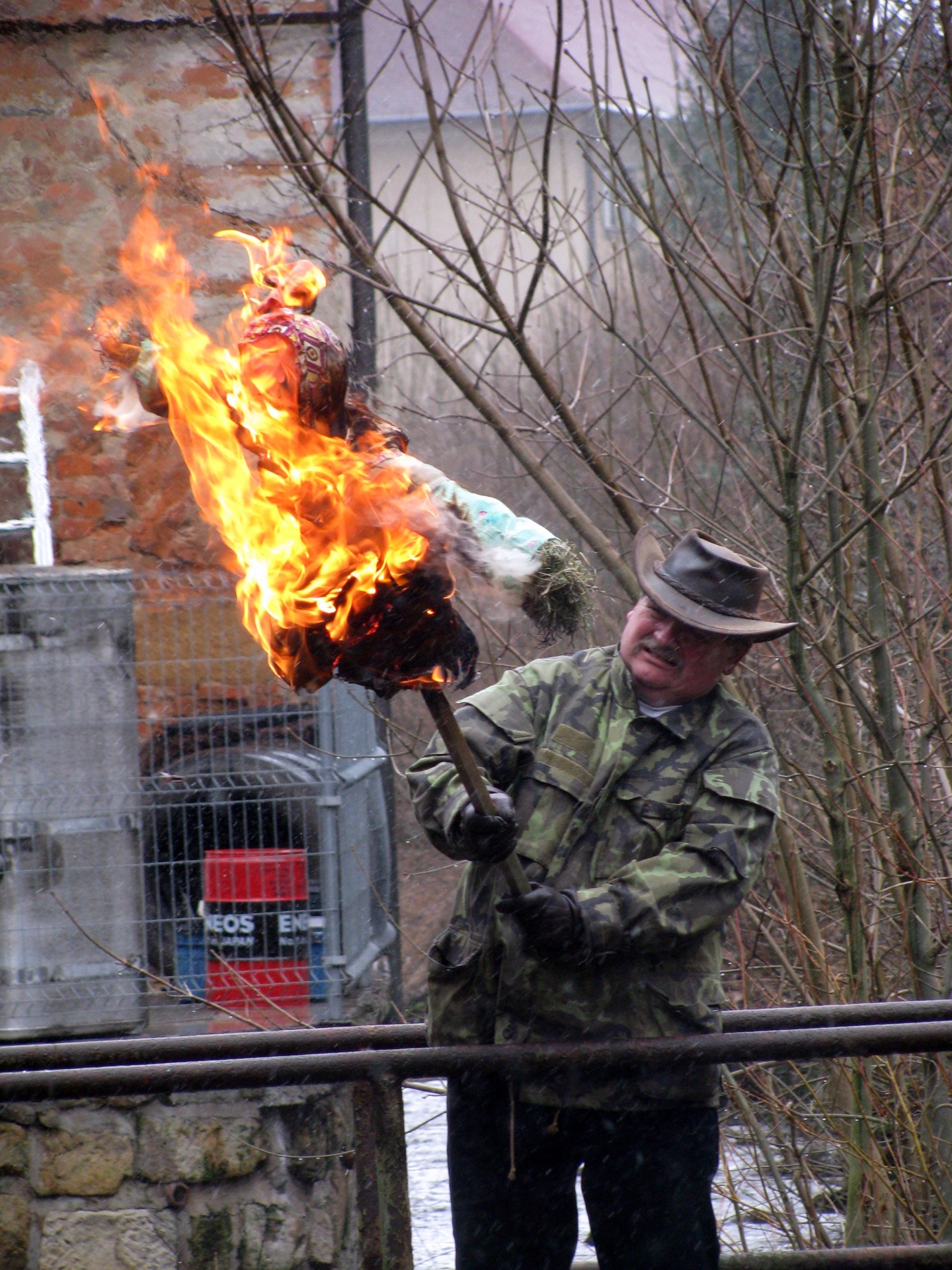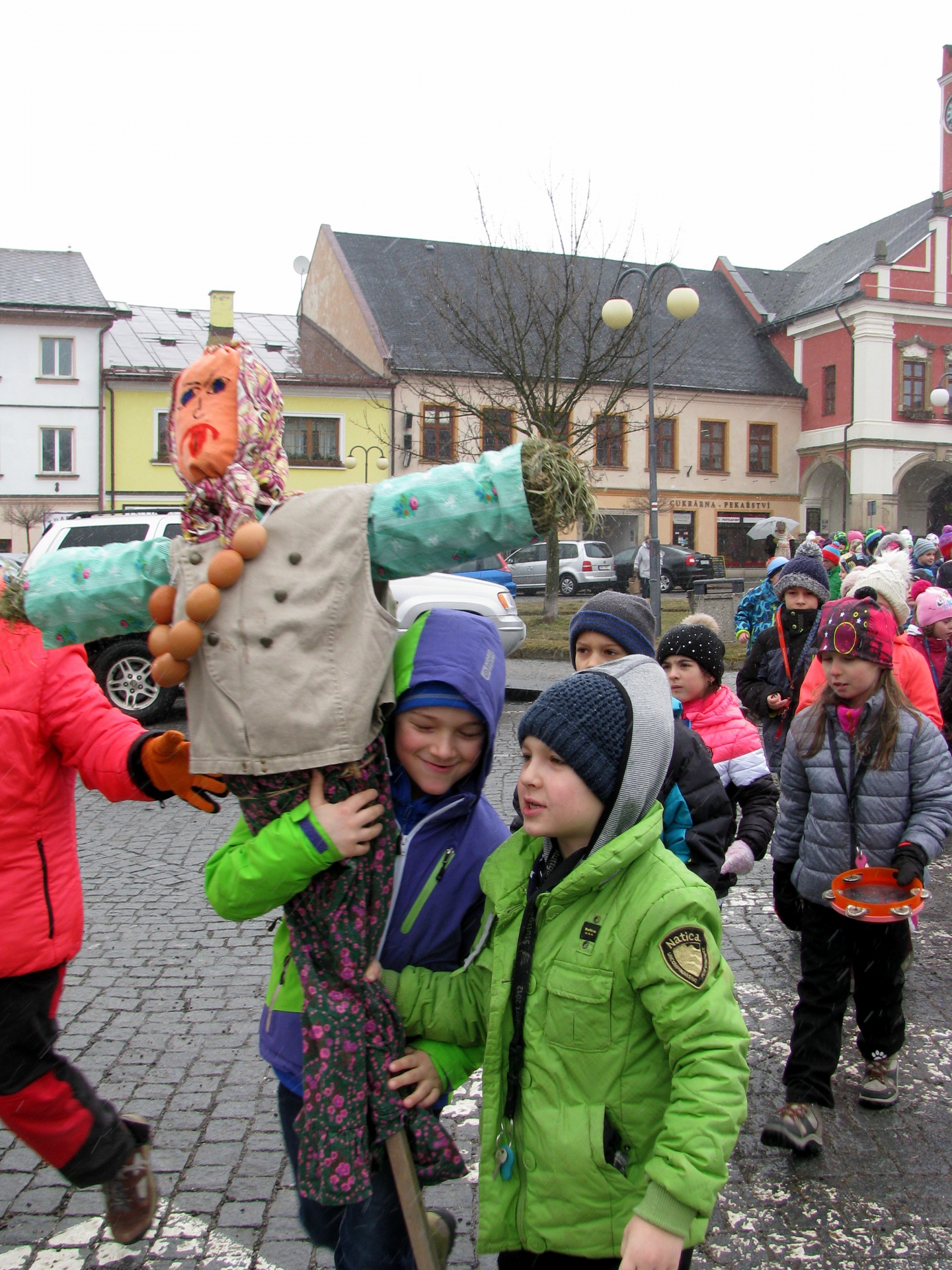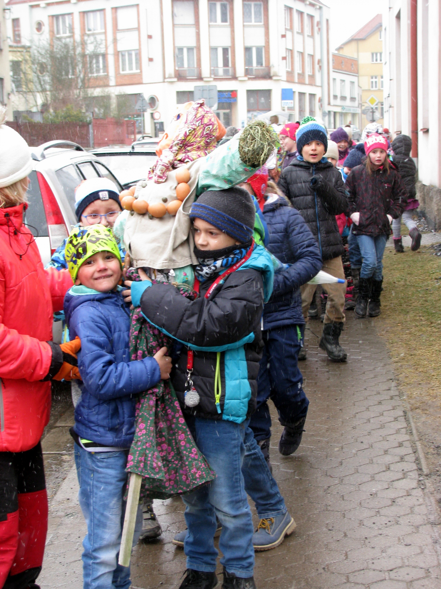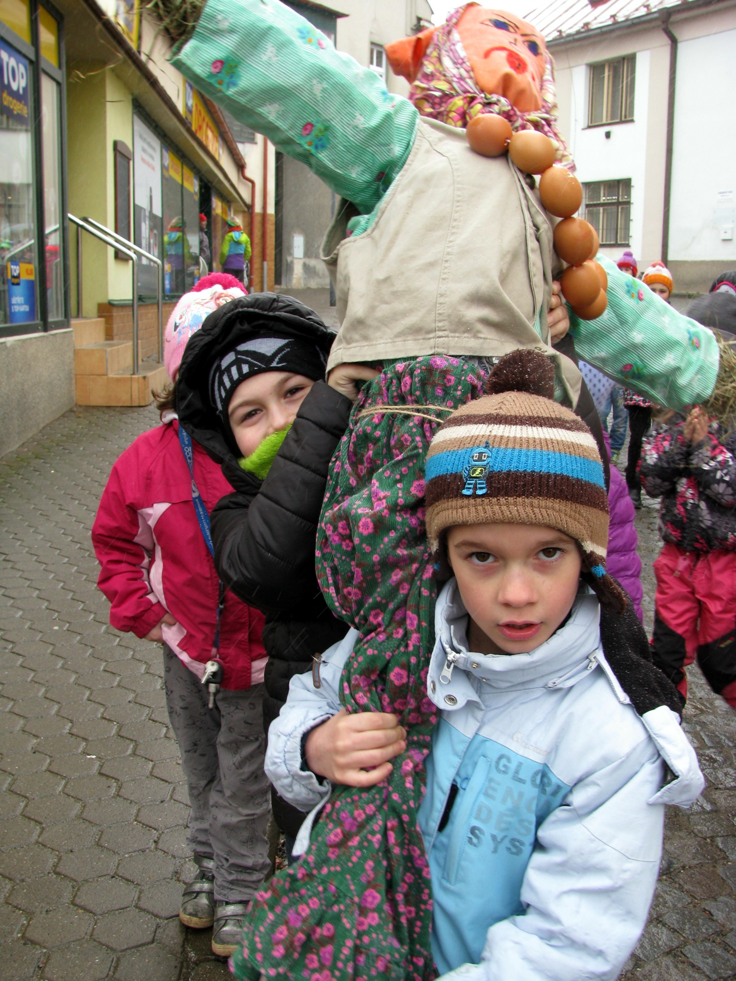 Ve 4. oddělení děti zhotovily Moranu, ve všech odděleních jsme si buď jen opakovali, nebo se naučili písně a básně o Moraně a píseň o jaru. V pátek 16. 3. na 60 dětí s nadšením vyrazilo od školy k říčce Ledhujce, abychom zimu z Police vyhnali. Cestou, a pak u vody jsme vykřikovali básně a zpívali písně. Z břehu a z lávky jsme sledovali, jak Morana krásně hoří a čekali, zda ohořelý kříž (zbytek Morany) odpluje. Ale pod mostem se zasekl a museli jsme mu pomoci, aby odplul. Nazpět ke škole jsme se vraceli s lítem, symbolem jara.