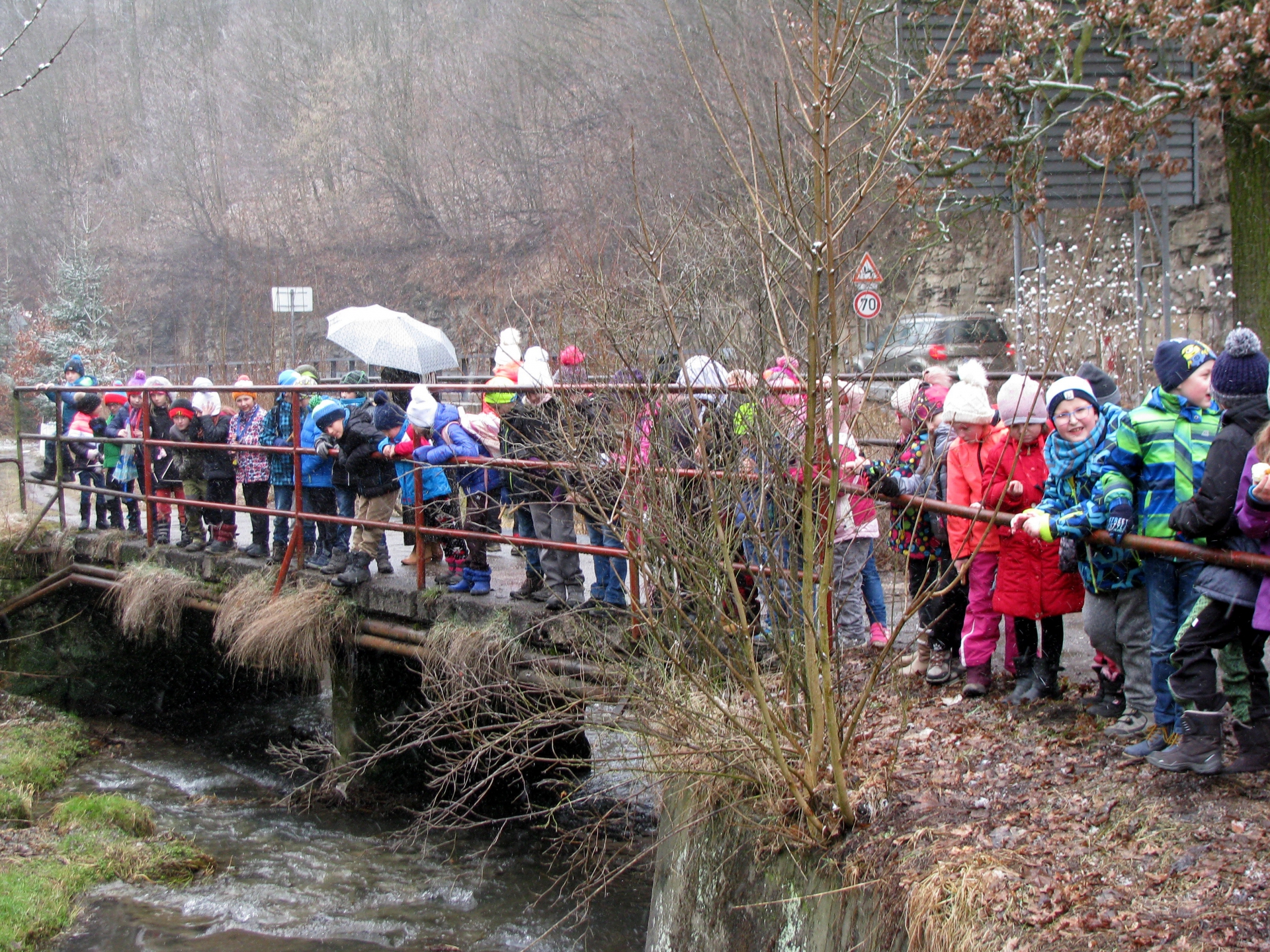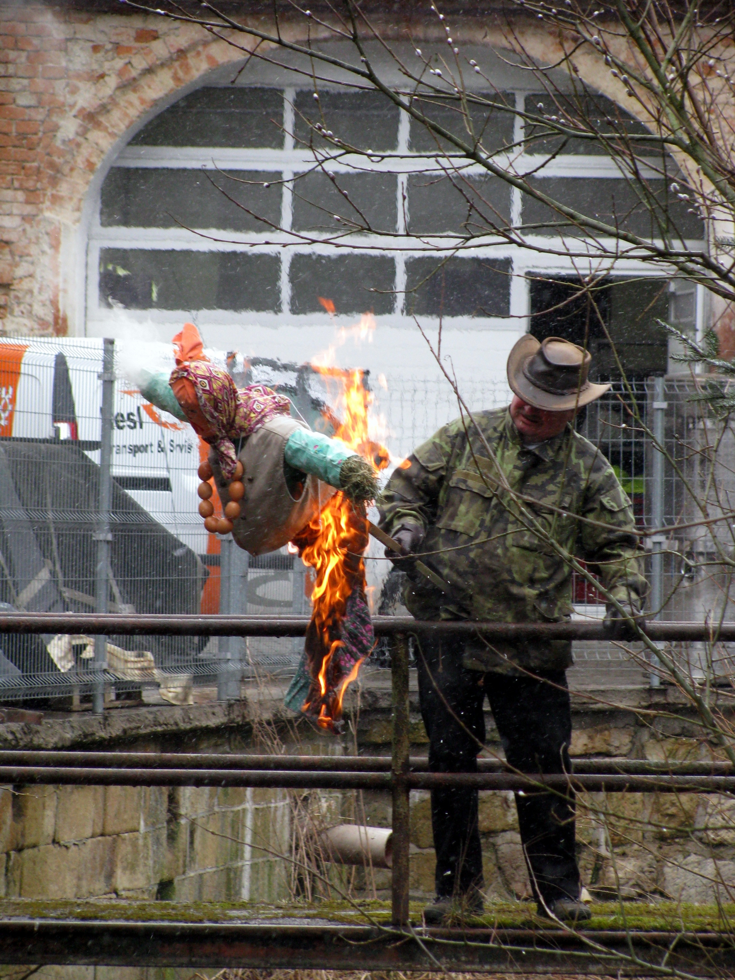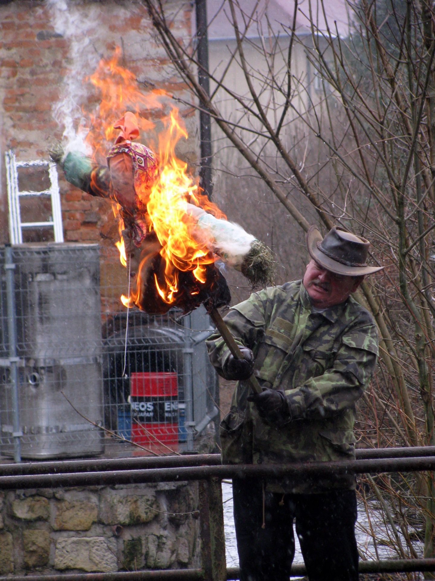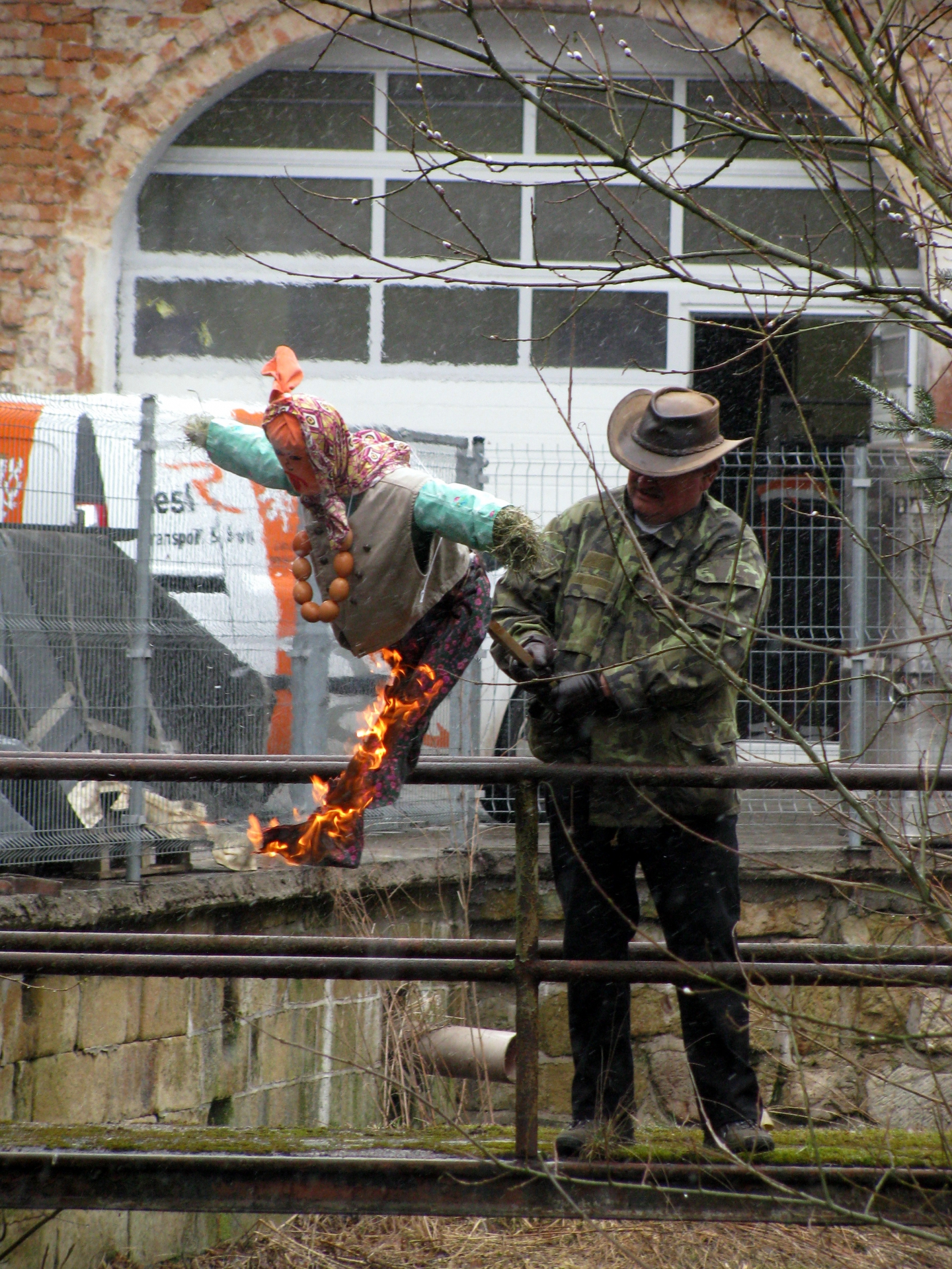 Ve 4. oddělení děti zhotovily Moranu, ve všech odděleních jsme si buď jen opakovali, nebo se naučili písně a básně o Moraně a píseň o jaru. V pátek 16. 3. na 60 dětí s nadšením vyrazilo od školy k říčce Ledhujce, abychom zimu z Police vyhnali. Cestou, a pak u vody jsme vykřikovali básně a zpívali písně. Z břehu a z lávky jsme sledovali, jak Morana krásně hoří a čekali, zda ohořelý kříž (zbytek Morany) odpluje. Ale pod mostem se zasekl a museli jsme mu pomoci, aby odplul. Nazpět ke škole jsme se vraceli s lítem, symbolem jara.