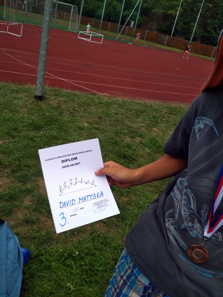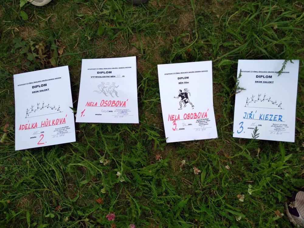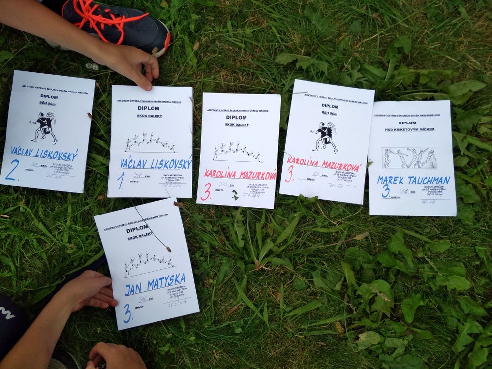 Během května a června jsme ve všech družinách měřili své síly v lehkoatletickém čtyřboji (běh 50 m, skok daleký, běh 300m a hod kriketovým míčkem). V pondělí 25. 6. jsme vyslali 17 žáků ze všech čtyř oddělení do Náchoda změřit své síly s vrstevníky z jiných školních družin našeho okresu. Vedlo se jim velice dobře, přivezli 11 medailí.