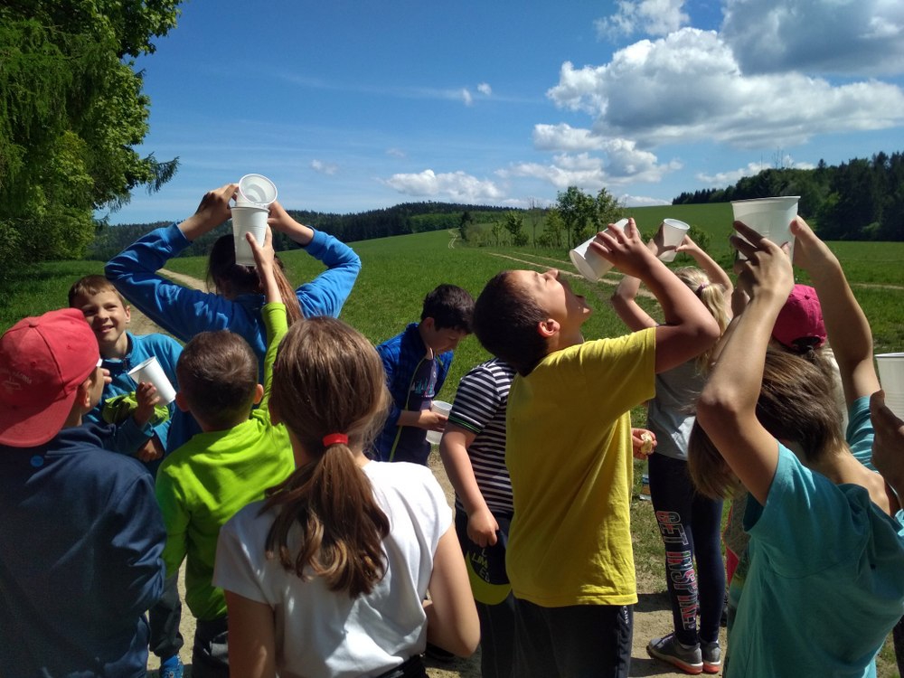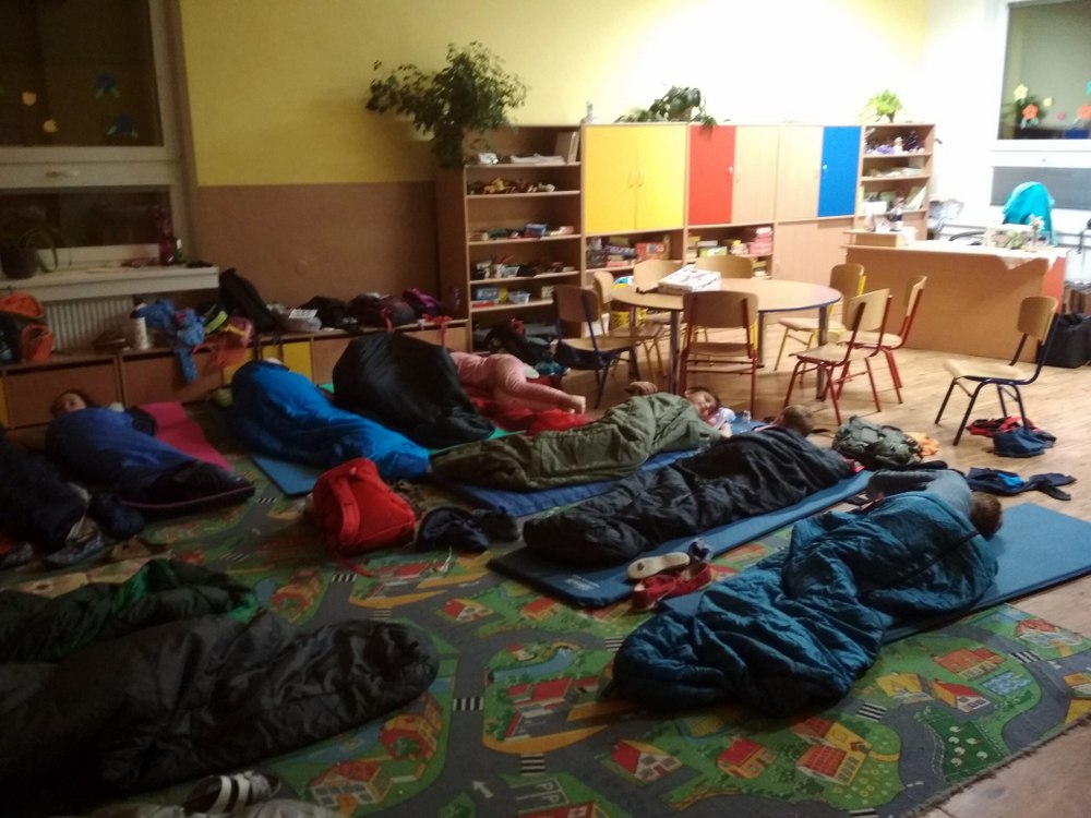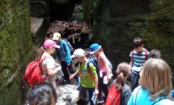 Věděli jste, že na břidlicovém podkladu roste více rostlin než na pískovcovém? Nebo že za vesnicí byl malý lom, ze kterého obyvatelé získávali kámen na stavbu svých domů? Neméně zajímavé bylo i povídání ve skalách. Kromě nových informací si děti zahrály i spoustu her. Po návratu do školy je čekalo ještě opékání buřtů, návštěva Dřevěnky a muzea v rámci „Noci kostelů“. Po noční hře temnou školou a překonání nástrah školního kotelníka děti ve svých spacácích spokojeně usnuly a spaly až do rána, kdy si je vyzvedli rodiče.