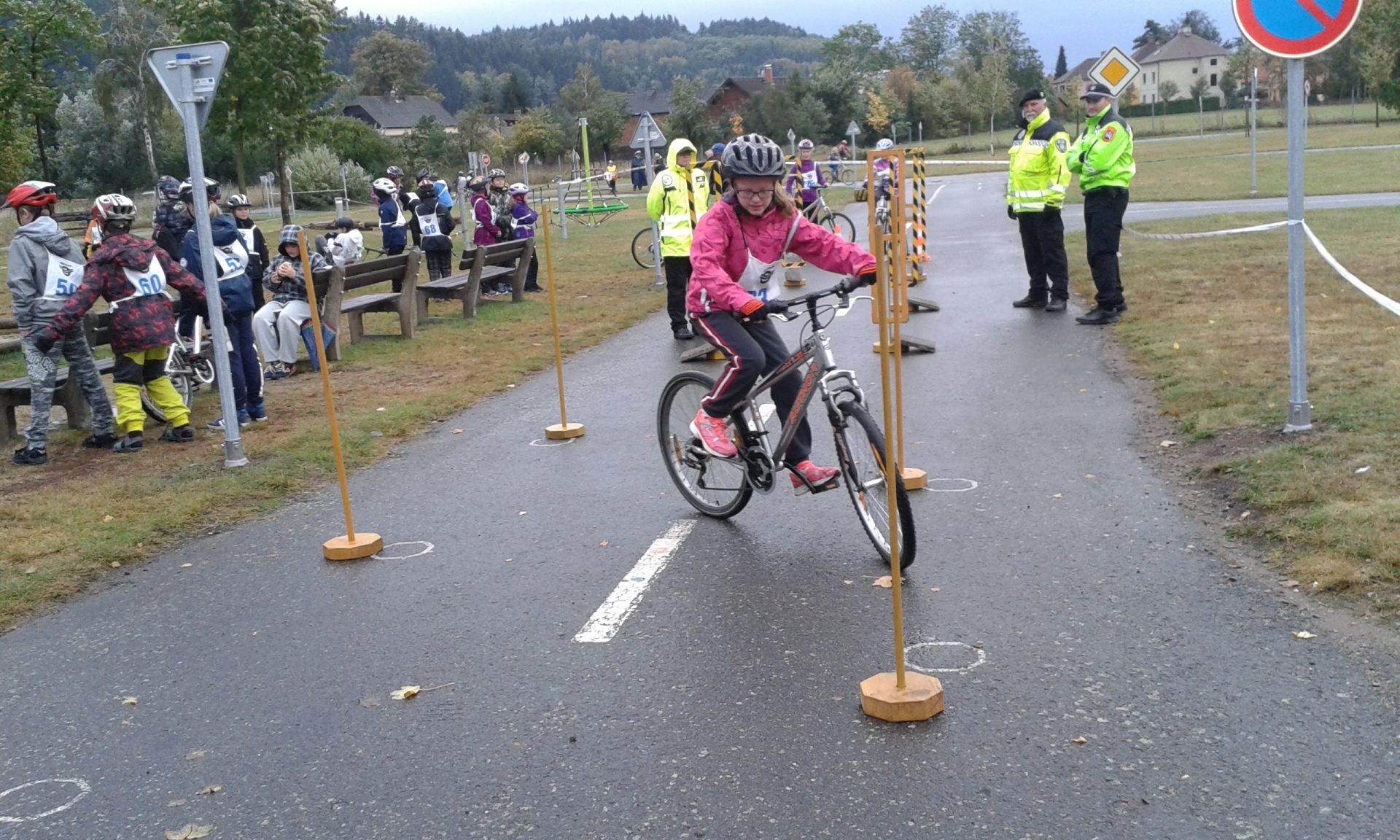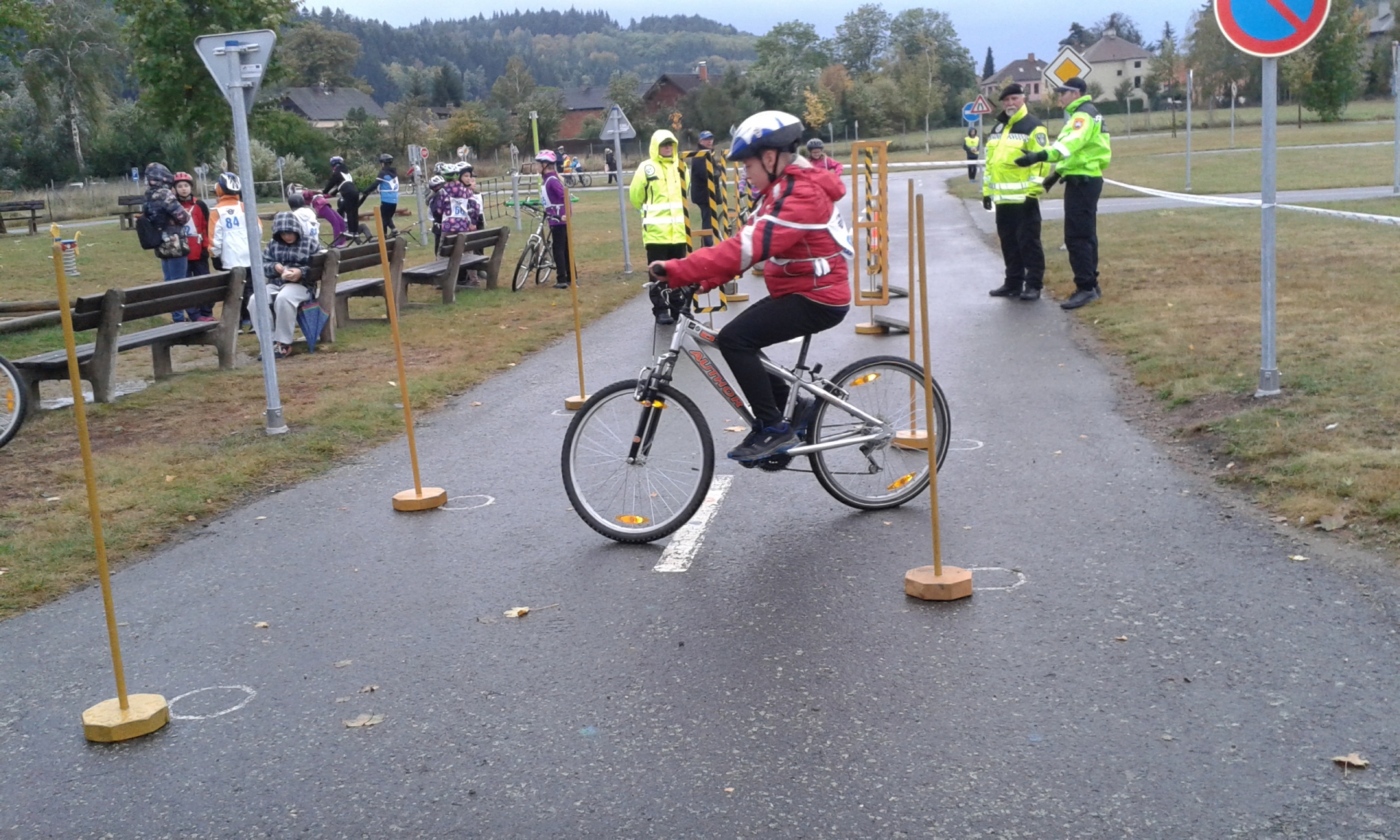 Děti soutěžily ve znalostech pravidel provozu na pozemních komunikacích formou testů, v praktické jízdě podle pravidel po dětském dopravním hřišti a v jízdě zručnosti na kole. Počasí závodníkům nepřálo, přesto naše družstvo vybojovalo krásné 8. místo z 21 družstev.